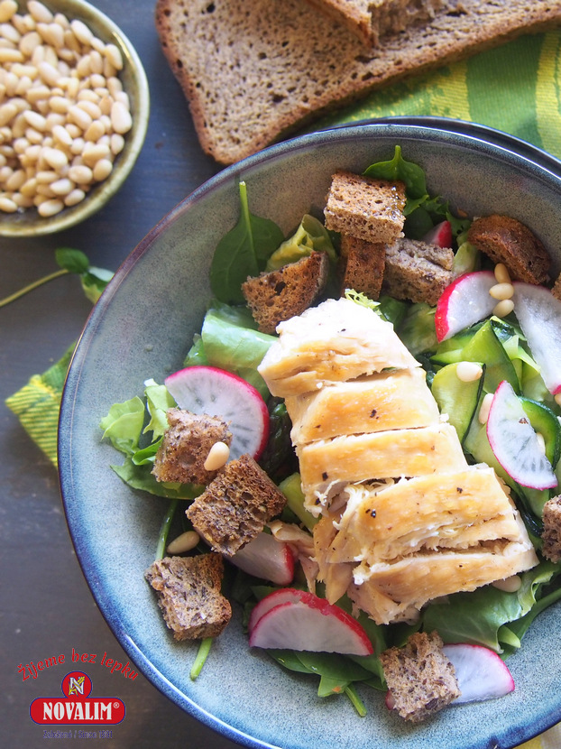 Na jar sa nám žiada zdravšie jedlo. Aj to bol dôvod, preči sme si dnes na obed spravili kurací šalát s bezlepkovými krutónmi z nášho čierneho chleba. Zdravý a ľahko stráviteľný obed, ktorý nám dodá potrebné výžibové látky a bez alergénov. A viete, čo je najlepšie? Na prípravu bezlepkových krutónov môžete využiť aj starší chlebík, ktorý by ste inak možno už nejedli.. A áno, aj my v Novalime podporujeme bezodpadové stravovanie :-).